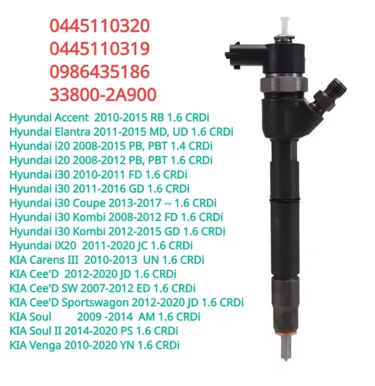 Engineered for optimal fuel atomization and reliable performance, this high-pressure diesel injector nozzle (Model NO. 0445110320) is specifically designed for Hyundai and KIA 1.6L CRDi engines. Constructed from durable steel and certified to ISO9001, CCC, and RoHS standards, it ensures consistent injection timing, reduced emissions, and extended service life. Each unit is 100% new and rigorously tested for multi-cylinder 4-stroke diesel applications.